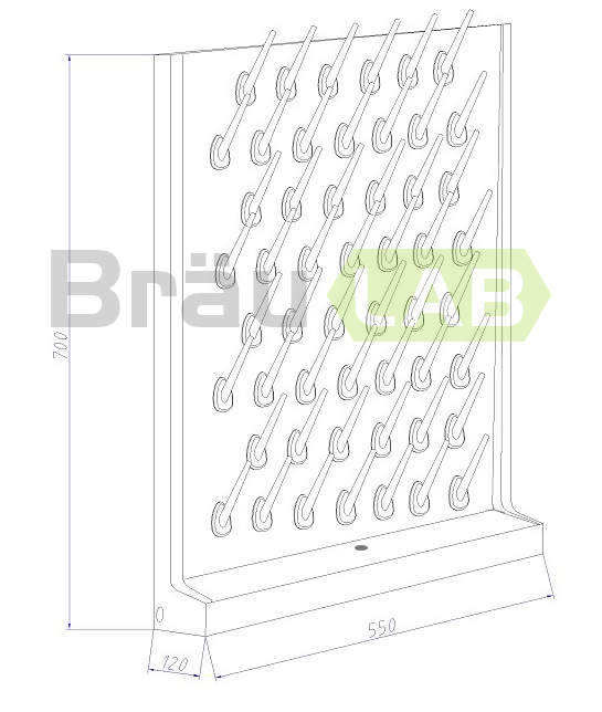 Includes 56 detachable hangers. Ideal for drying glassware. There is a waste tray and drain hose. Collect the drips flowing from the materials and drain down through the drain hose. The drain outlet hose must be extended to the sink.