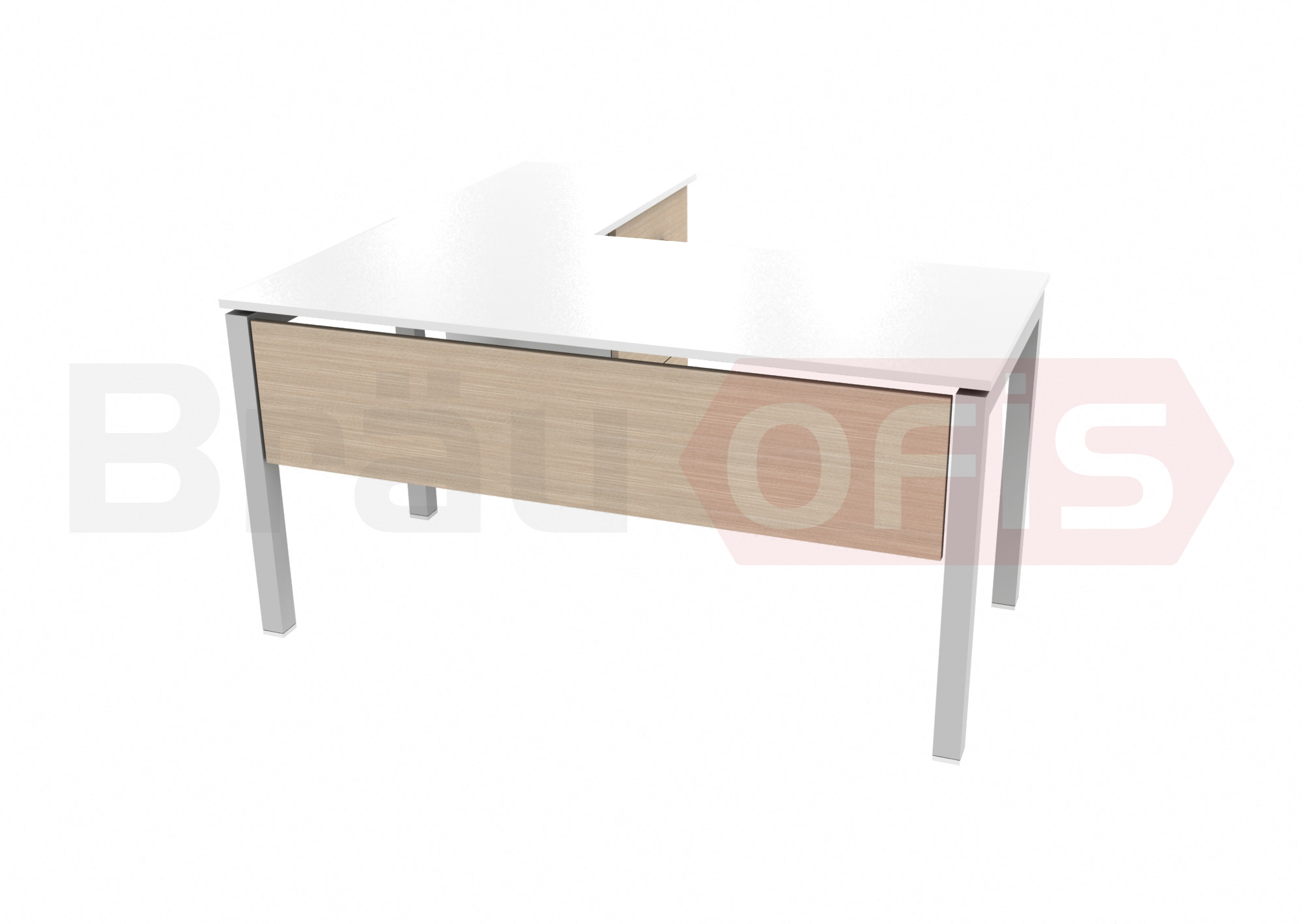 The worktop is made from 30mm chipboard covered glossy white melamine. The pedestal is made from 18mm MDF boards covered with glossy white melamine. The handles are metal matte or bright chromed.